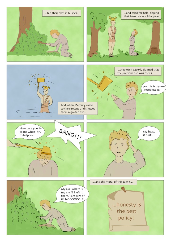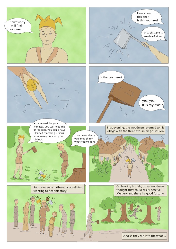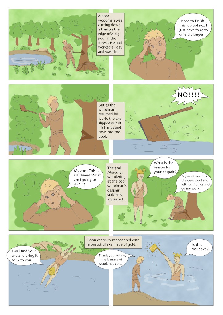 In the end, I selected one of Aesop’s fables that is a bit longer than others but manageable in this context: Mercury and the Woodman. I used the version found in the following website: https://read.gov/aesop/102.html.