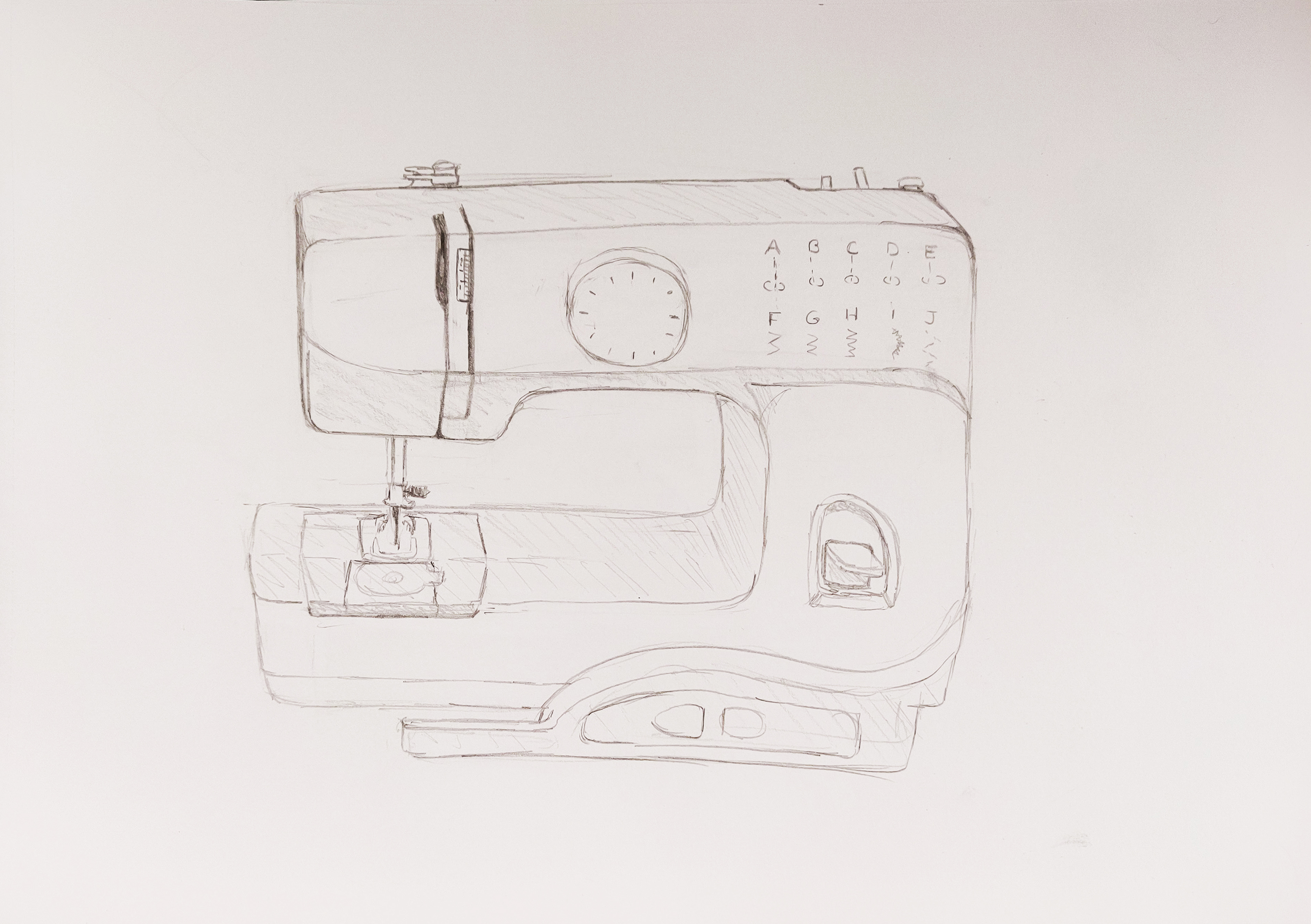I first looked at domestic items and selected the letter “S” for Sewing machine, Shoe, Scissors, Sofa and Shirt.