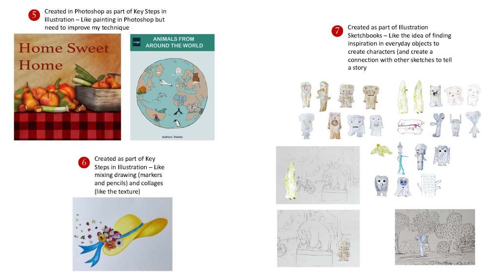 I went through my work and created a gallery with my favourite pieces. Sometimes I selected an illustration or a sketch because I was interested in one aspect of the drawing even if it was not finished or if the end result was not satisfactory. I then reflected on what these pieces had in common.