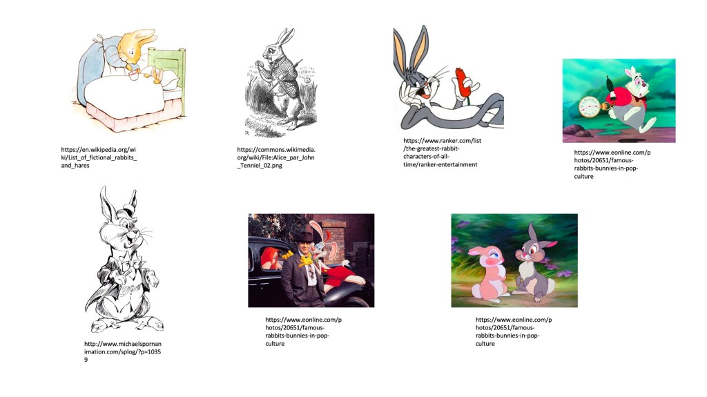 I created a moodboard where I explored the representation of rabbits in cartoons: