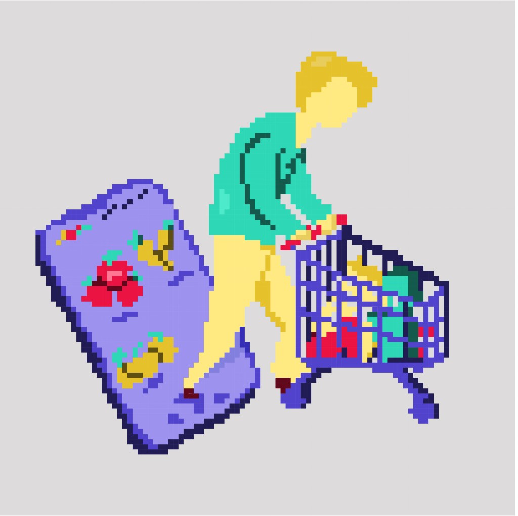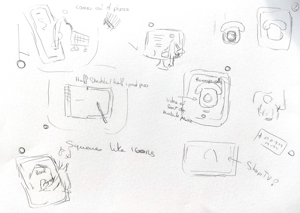 Now that I have experimented with that type of illustration, I would change a few things. I created the sketches by hand and did not want them to be too perfect to keep some dynamic. However, because the colouring cannot be perfect since a colour has to be selected for each square, it might have been better if the lines of the sketches had been more straight and maybe drawn in Illustrator (especially with geometric shapes like the phones or tablet).
