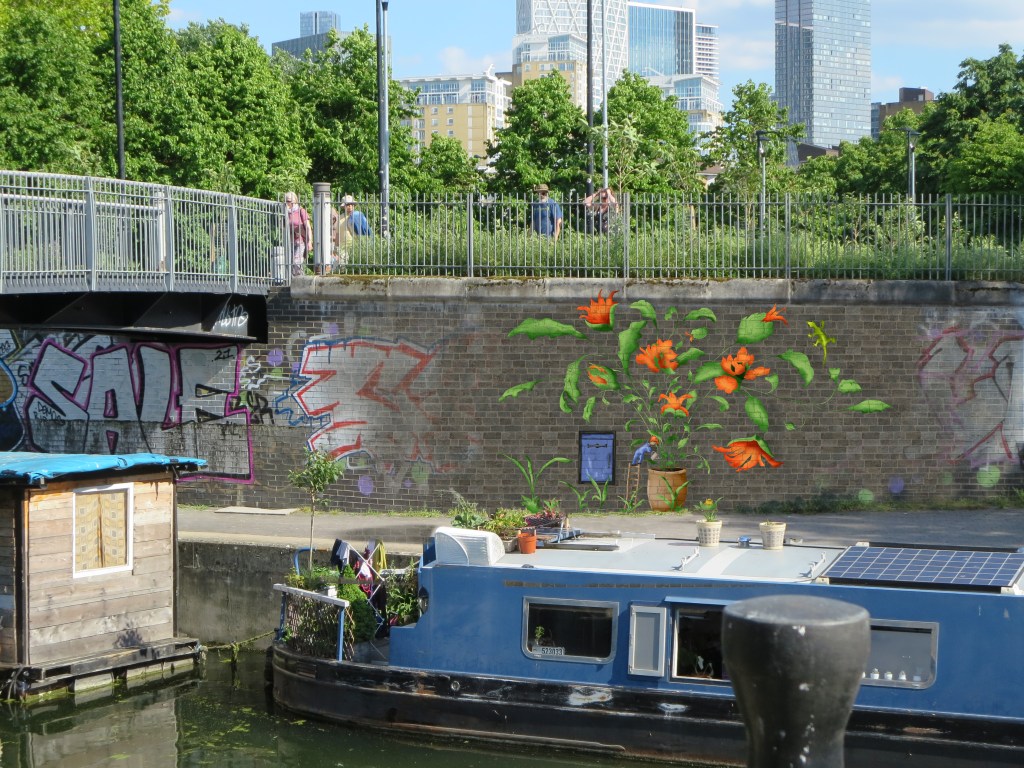 There are quite a few graffitis on the wall along the canal; some are elaborate and interesting but that is not always the case. Some street art relevant to the place could enhance the area. The wall is probably about 2 meter high and the illustration would be slightly wider than that.