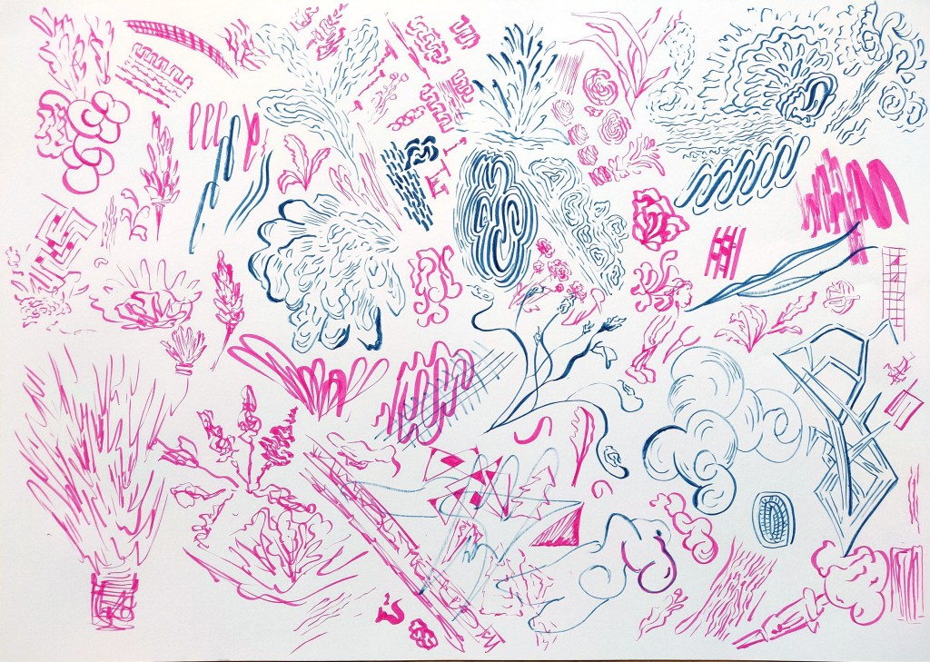 I wonder if I did not try too hard not to focus. Maybe it does not matter if I draw elements at random that might look like characters or flowers or anything else.