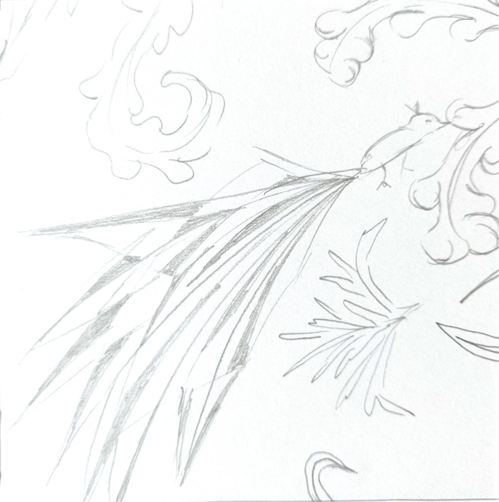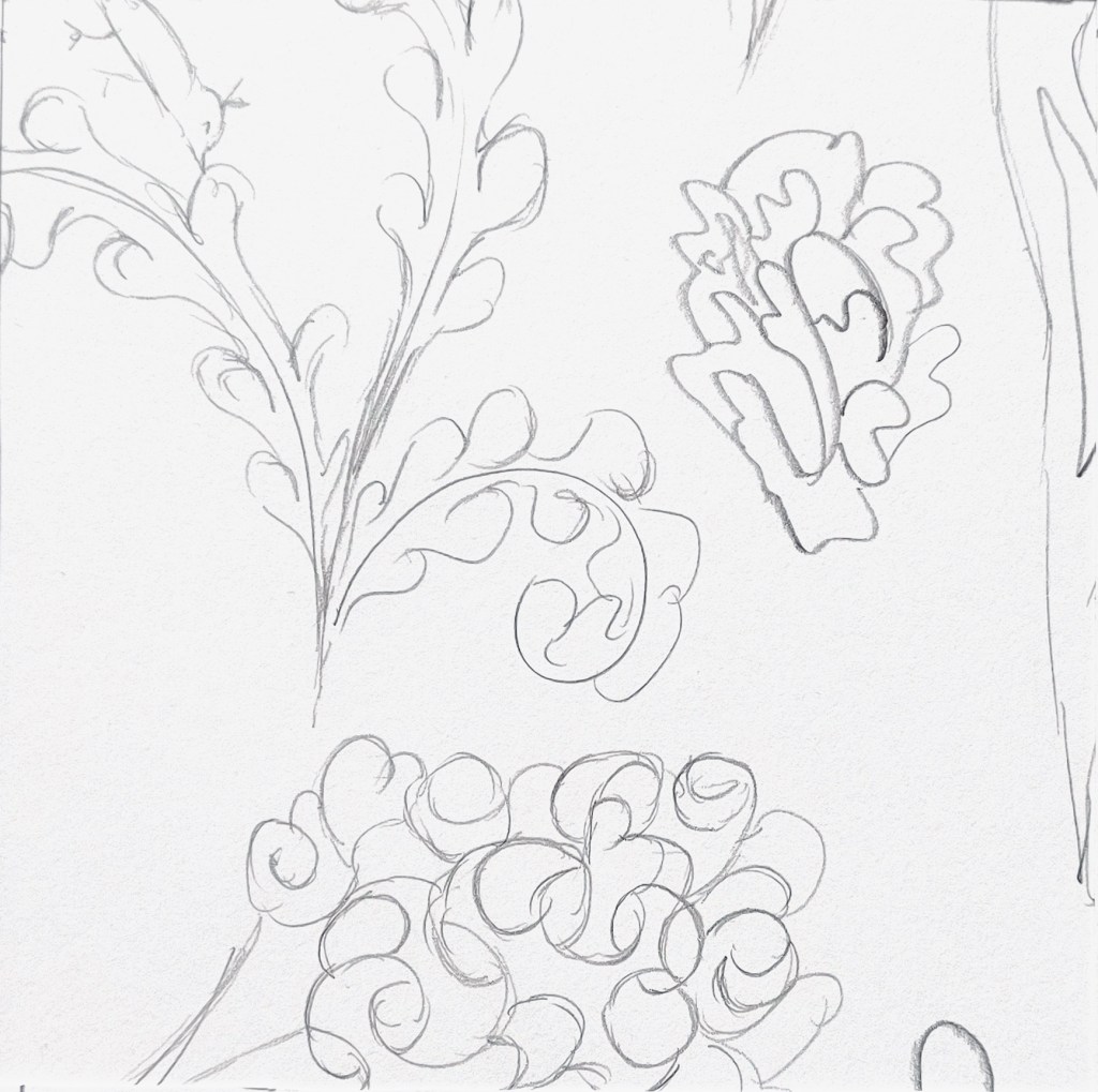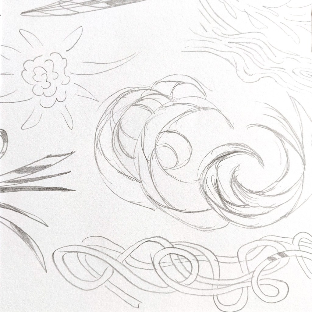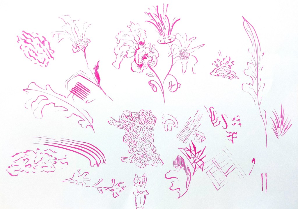 I often doodle if I am on the phone or if I am listening to something and I always end up drawing similar things such as some kind of leaves and flowers and I had to try not to do this in that exercise and experiment with more varied lines.