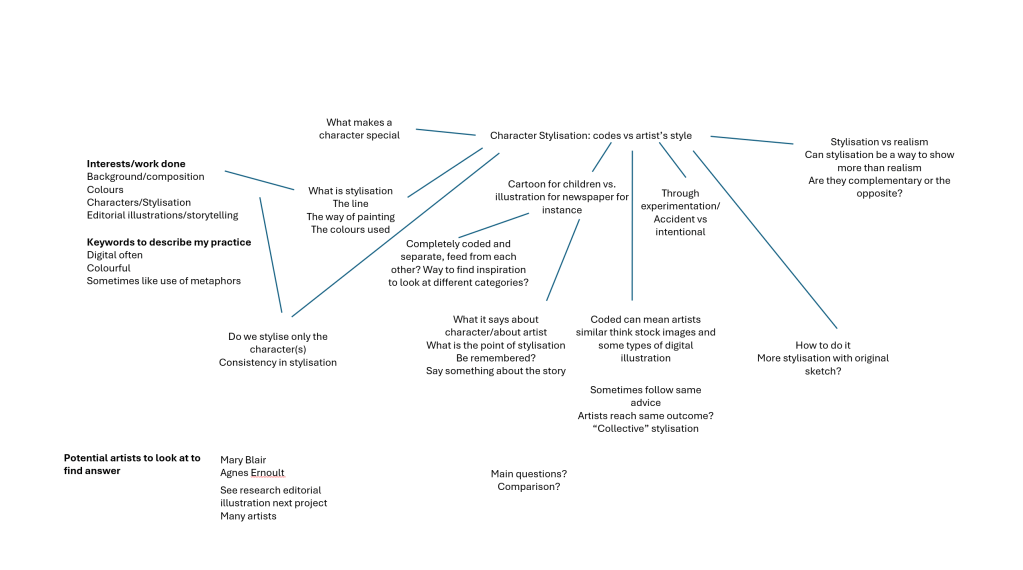 I also need to define terms such as stylisation and style, character, editorial illustration, to make sure that I understand how to direct my research.
