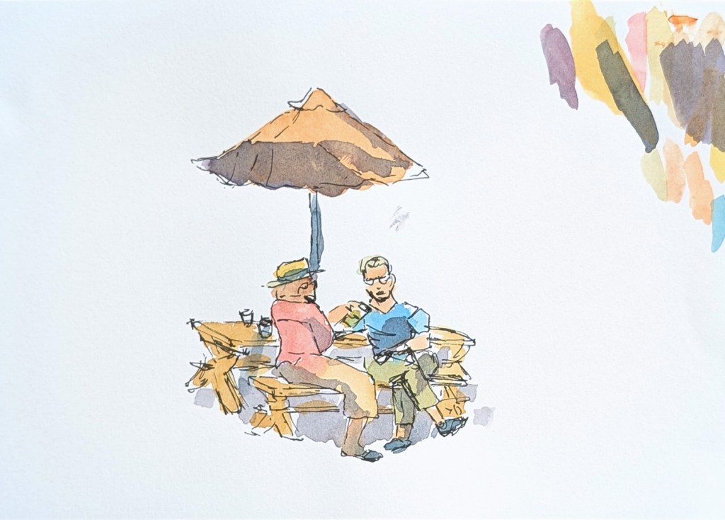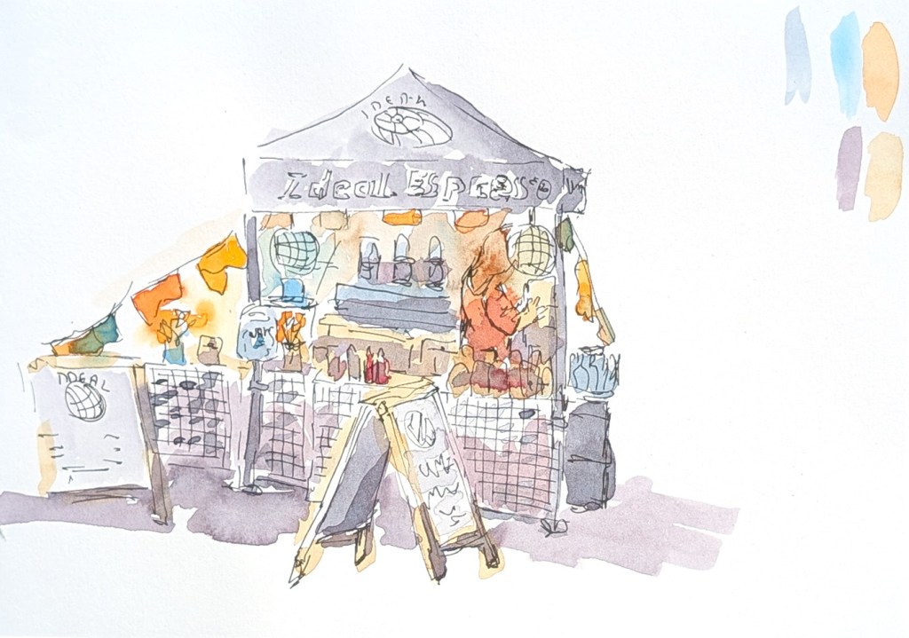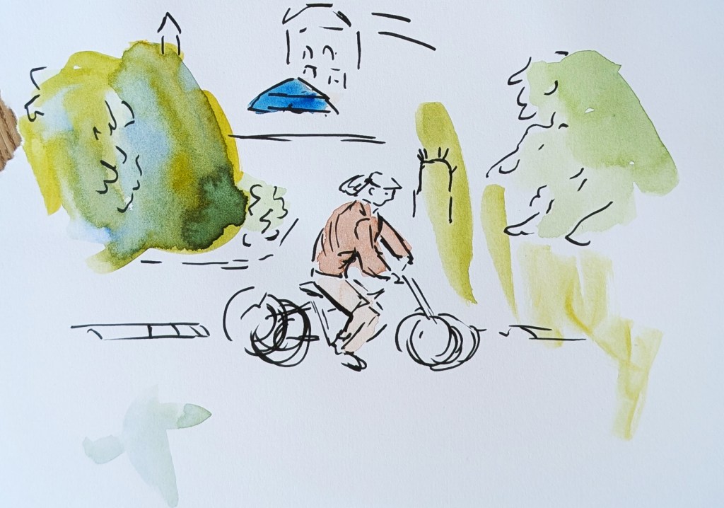 I have experimented with fine liners or brush pens and watercolour and tried different techniques. I have learned a lot from watching videos where artists explain how they use watercolour to add some colour to their sketches. I was particularly inspired when I watched a video where Paul Cox demonstrates how he uses watercolour.