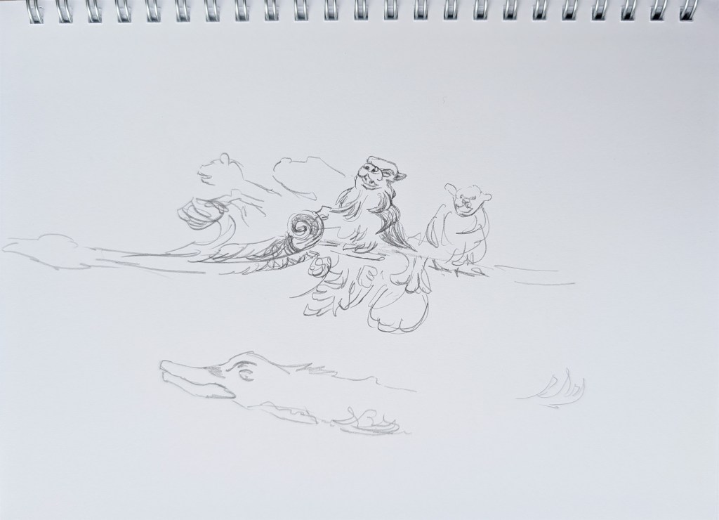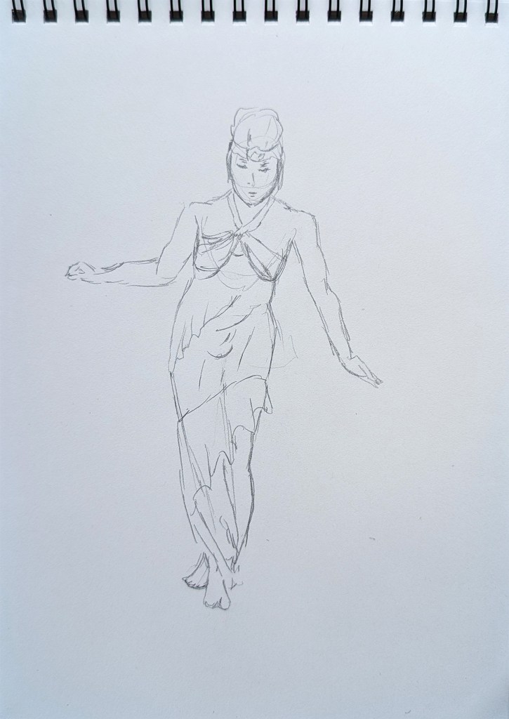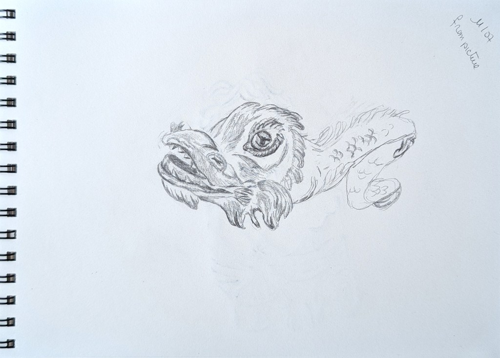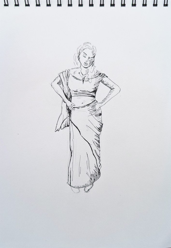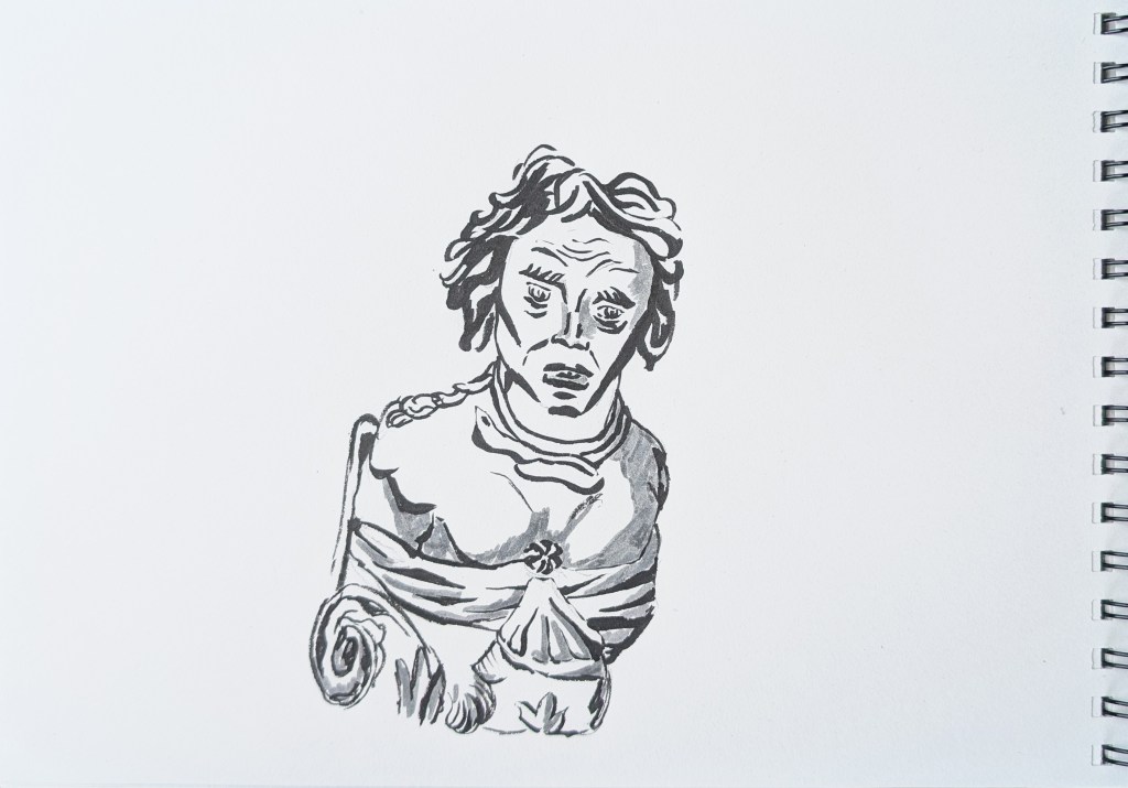 I have sketched on location a few times at weekends. Once I went to the Maritime Museum in Greenwich to draw. It was interesting because, once I was there, I remembered that the Maritime Museum was the subject of a brief when I studied for my first unit “Key Steps in Illustration” (https://catherineillustrationblog.wordpress.com/key-steps-in-illustration/courseworkkeep/part-4/museum-posters/). I could see that I had become much more confident than I used to be. The sketch of the figurehead below took only a few minutes. When I started the degree in Illustration, I would have found it much more challenging.
