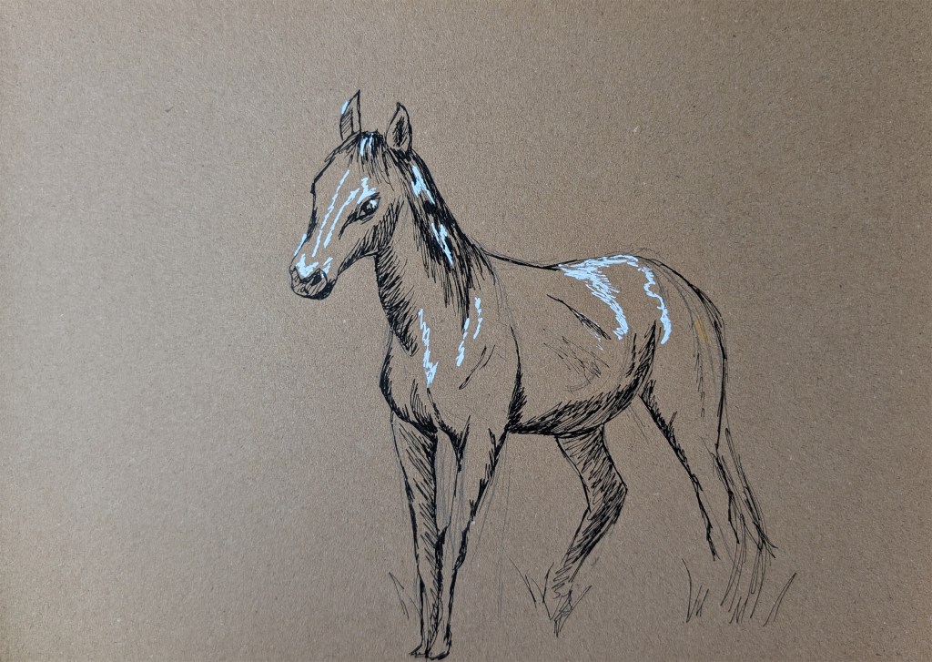 I have also tried coloured paper (brown and black). At first, I did not really know how to approach a sketch on toned paper, so I did a quick search on Google. Drawing on brown paper is an effective way to concentrate on highlights and shadows while using black paper means that I have to focus on lighter areas. I have enjoyed working with both and will experiment further. In a sense, it has similarities with the exercise I mentioned earlier that consists in drawing dark areas only.