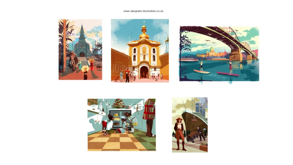 I chose to look at Alex Green’s illustrations because I really like his work and he always creates rich and interesting backgrounds.
