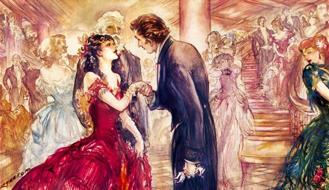This piece by Patrick Raleigh is a good example of how to use vibrant colours to bring the focus to a given area. The main character wears a bright red dress with touches of vivid pinks and oranges, while in the background, the colours are lighter with less contrast.