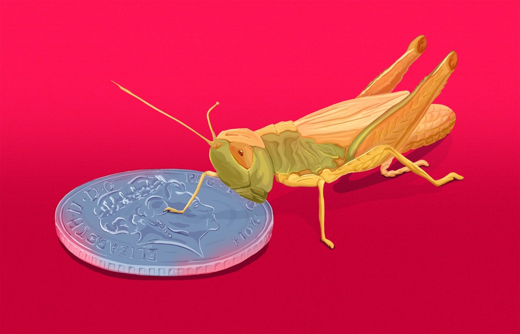 Finally, I tried to add the original lines to the illustration with the grasshopper as suggested by my tutor. Unfortunately, because I had changed some proportions as I went along, it did not work very well. In the end, I added a bit of texture to the grasshopper and some “colour contamination” to both the grasshopper and the coin as if the colour of the background is reflected on them. It brings more cohesion to the whole image.