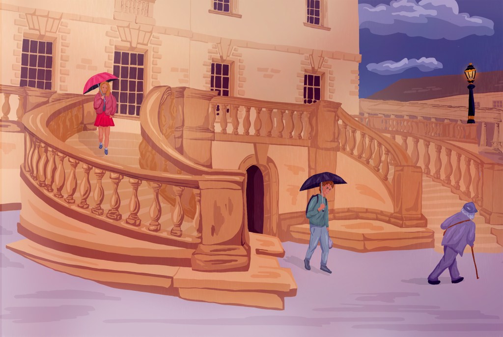 I also finalised the first illustration I had created with the staircase at the centre. I redrew the woman and fixed a few little things.
