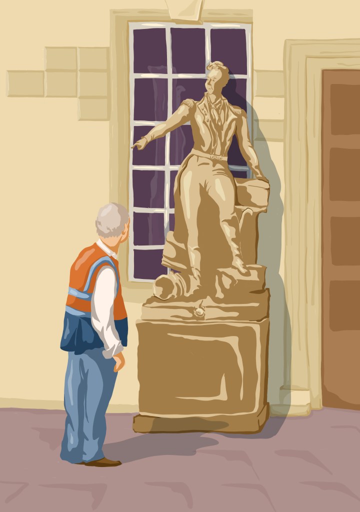 When I drew the statue, I did not want it to look exactly like the original, as the illustration is about the concept of a historical figure and not about this statue in particular.