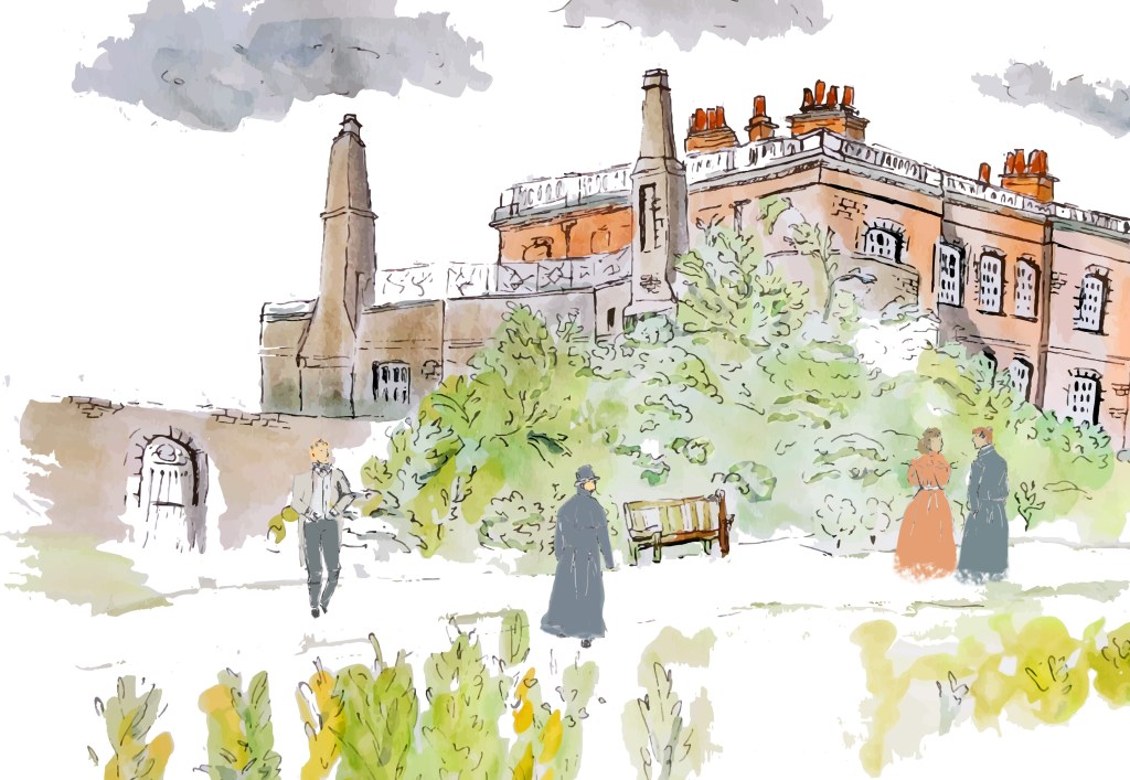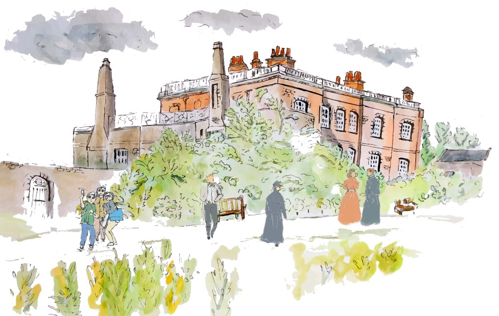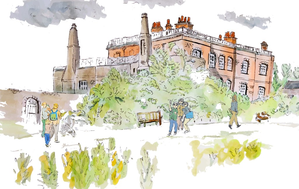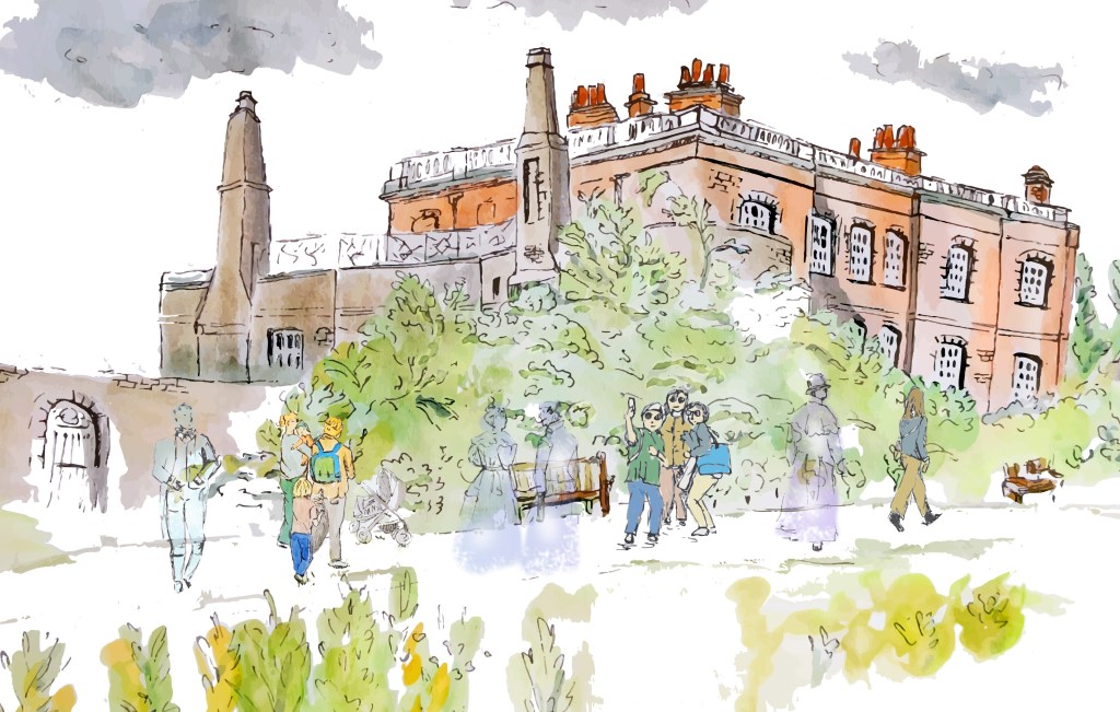 After reading my tutor’s feedback, I decided to experiment further around the idea of the staircase and its history. I remembered that I had done a similar exercise with the sketch of a period house in Greenwich for the unit “Responding to a Brief” (https://catherinerouxillustrationdegree.uk/illustration-year-2/responding-to-a-brief/coursework/part-2/exercise-architectural-illustration/). At the time, I mixed sketches from the past and the present to tell different stories: The first option shows the people from the past as translucent as if they have left a faint trace, the second could be a film set, the third could take place in the past and the fourth in the present.