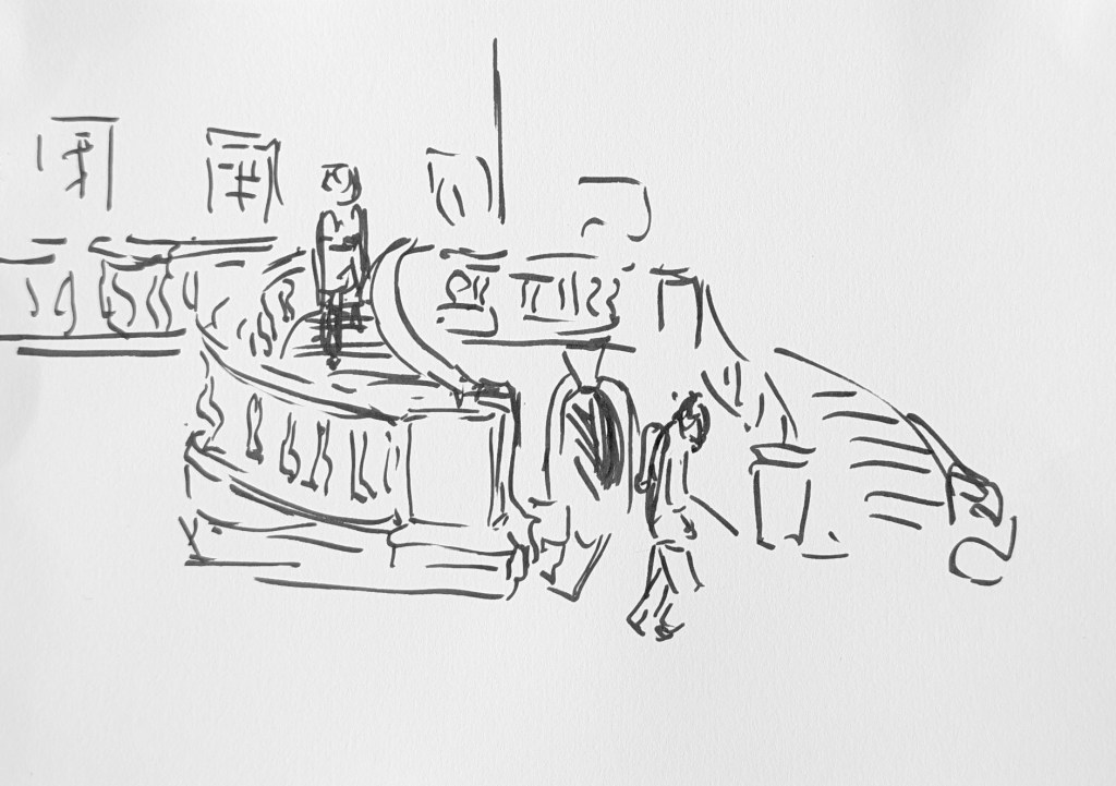 Following my tutor’s suggestion, I tried to create a quick watercolour sketch as I wondered what details I would keep if I used that technique. I did not add watercolour as I was not so happy with the sketch.