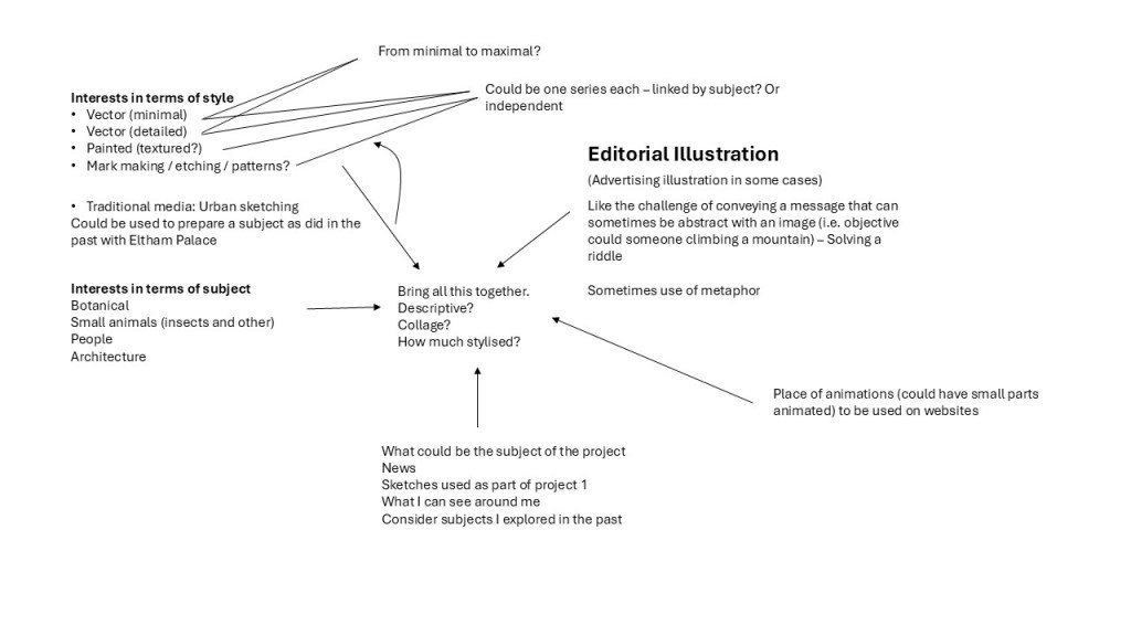 I have explored this kind of illustration in more depth as part of the previous project and would like to keep experimenting with that style.