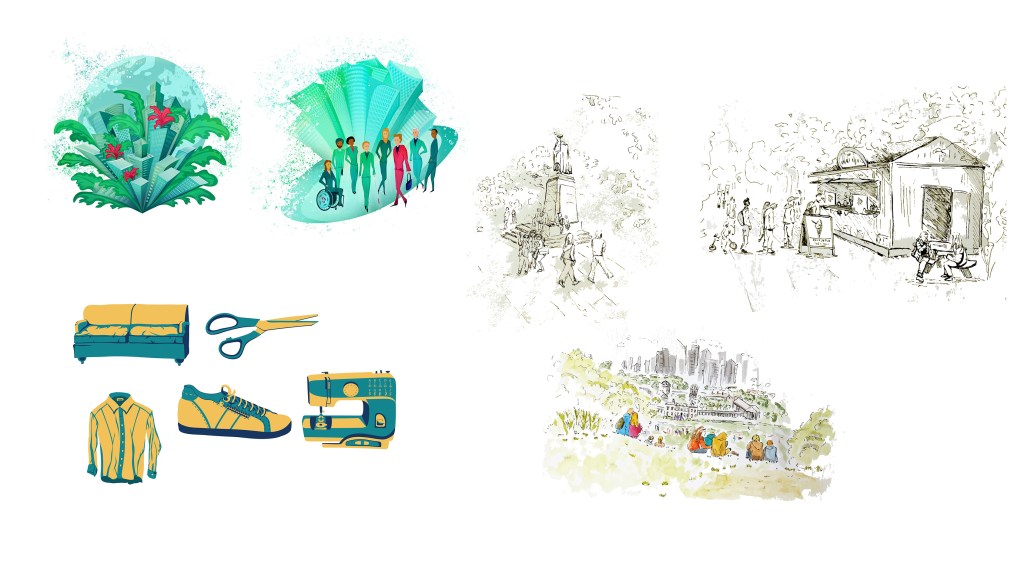 I have created sketches in the park as part of a previous project, but this is a very rich area in terms of history, people, buildings and there is much to discover yet through illustrations.