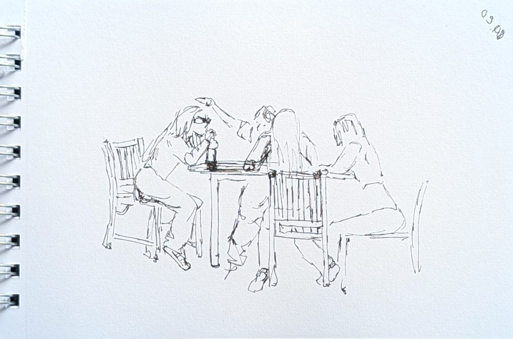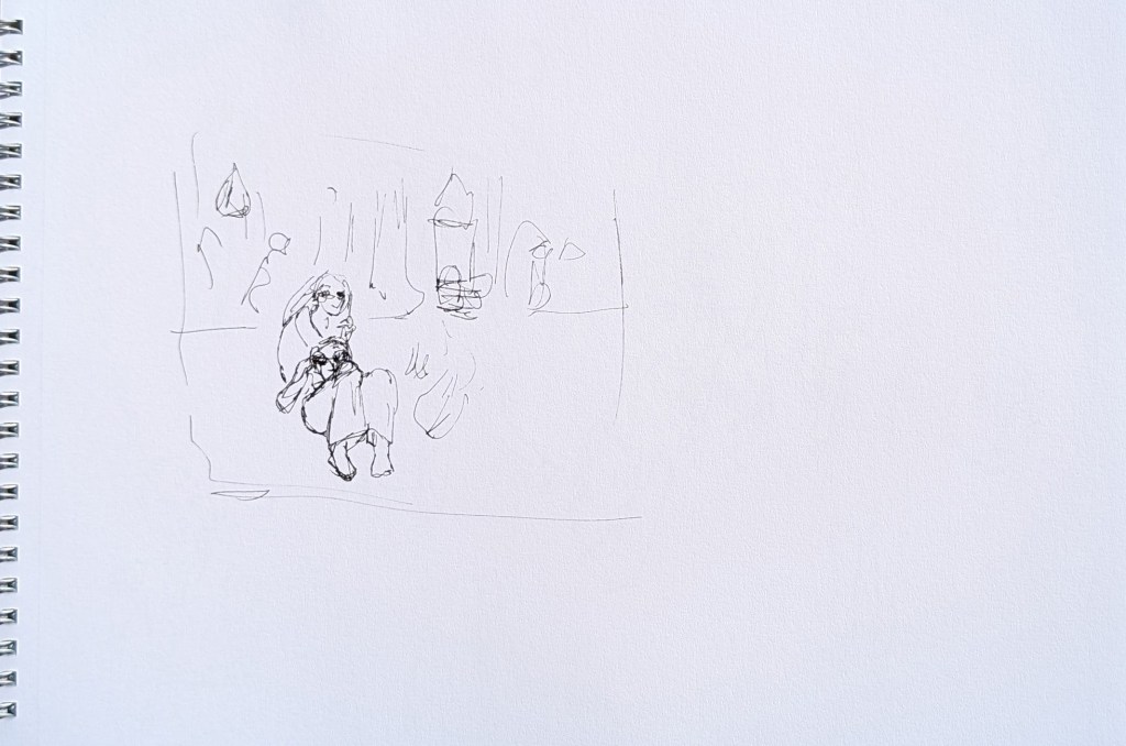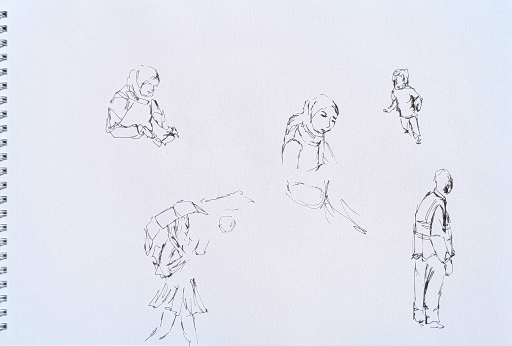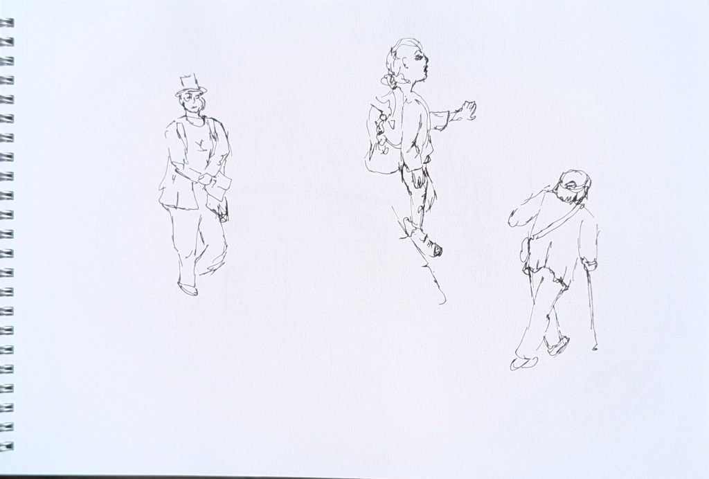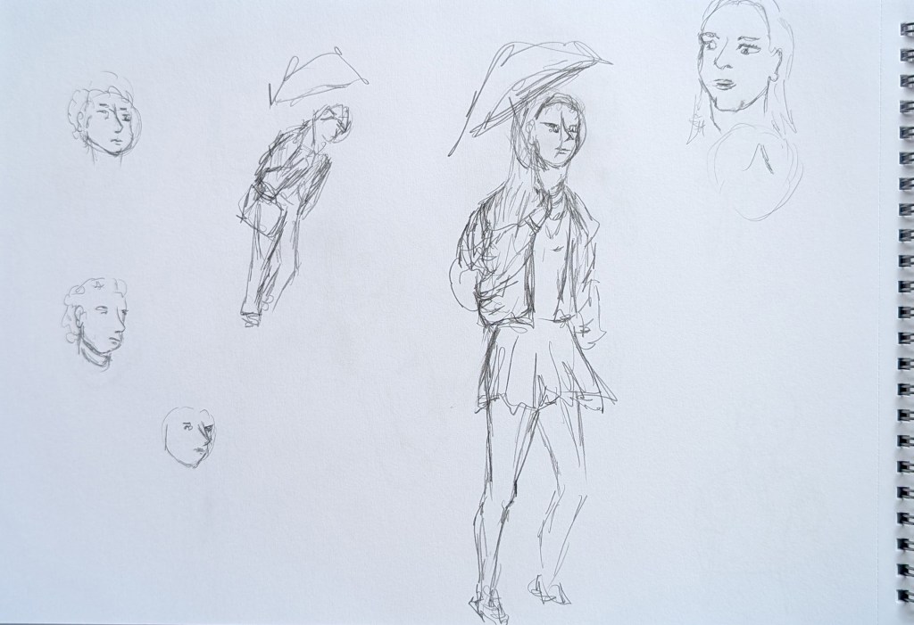I then created fast sketches while looking at the pictures I had taken. I find that it is a good way to find inspiration especially with sketches of people. Below are some of the sketches I created.